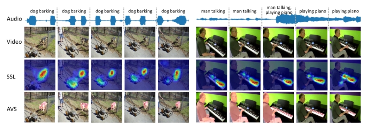 | SSL (Sound Source Localization) | 帧内与声音相对应的视觉区域 | 只能粗定位, 无法分割具体形状 |