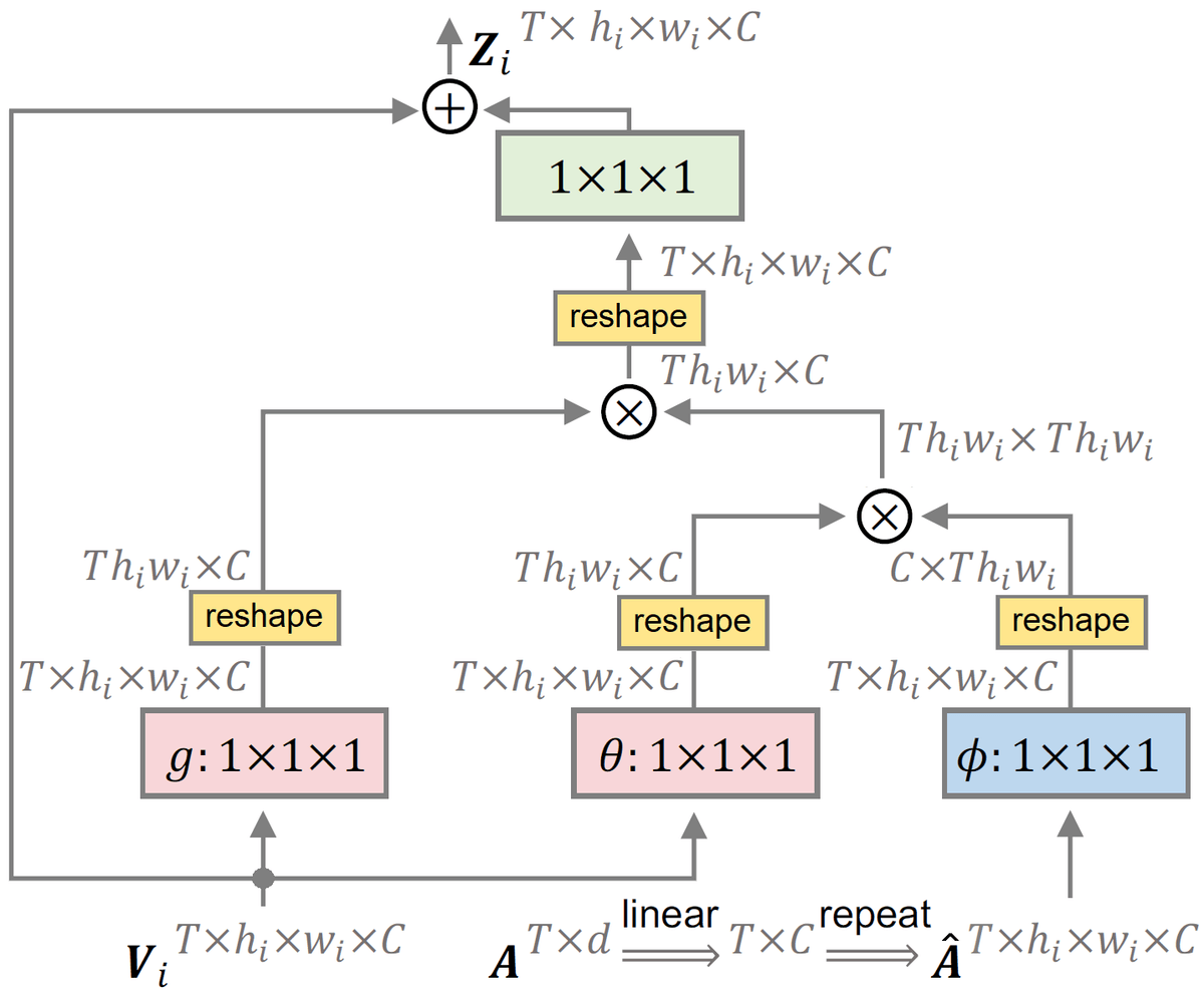 TPAVI 内部是一个非局部注意力结构(类似 Transformer 的 self-attention), 核心计算为: