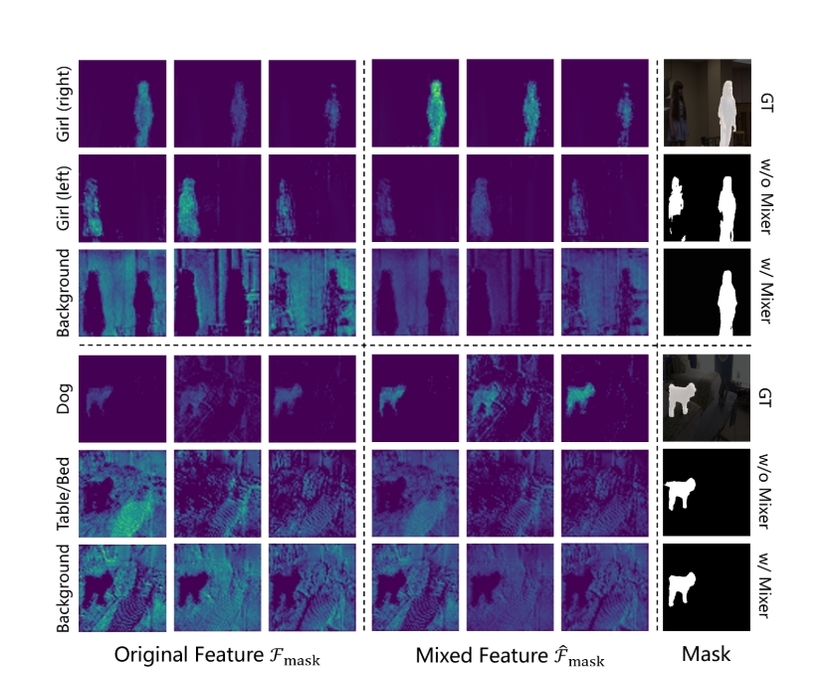 引入 Mixing Loss , 通过线性层整合所有掩码特征的通道 , 并预测一个二值掩码,同时将真实标签中的所有前景标签提取出来作为一个新的二值标签, 计算它们之间的 Dice 损失