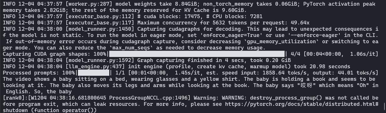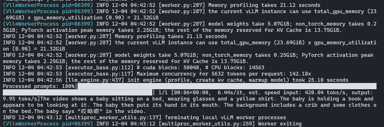 pip install vllm-0.8.5.post1+cu118-cp38-abi3-manylinux1_x86_64.whlzsh用空闲的卡并配置 modelscope 下载,不过这里用本地模型 model_name = "../cache/modelscope/Qwen/Qwen2.5-Omni-3B",